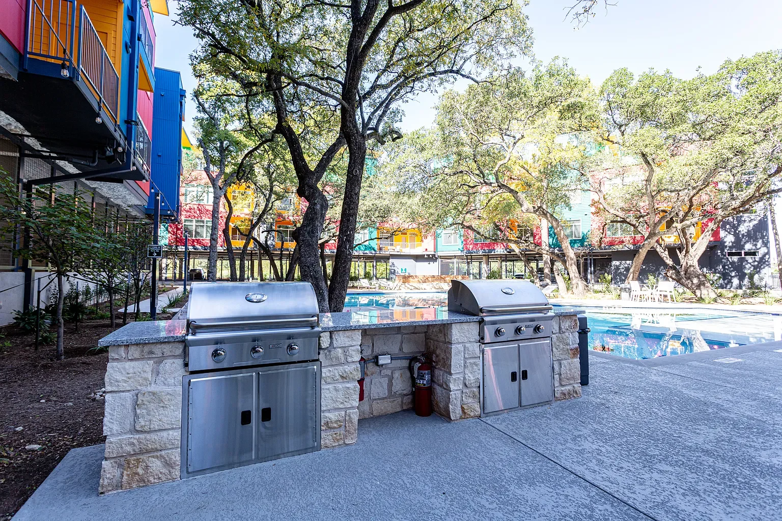 Our vibrant color palette is a reflection of the creative, bold community that calls Aspire home. The central courtyard features mature oak trees, a sparkling pool, and BBQ areas—your private escape in the heart of North Austin.